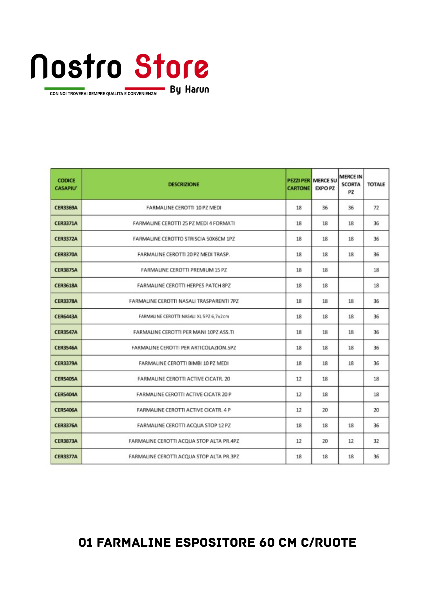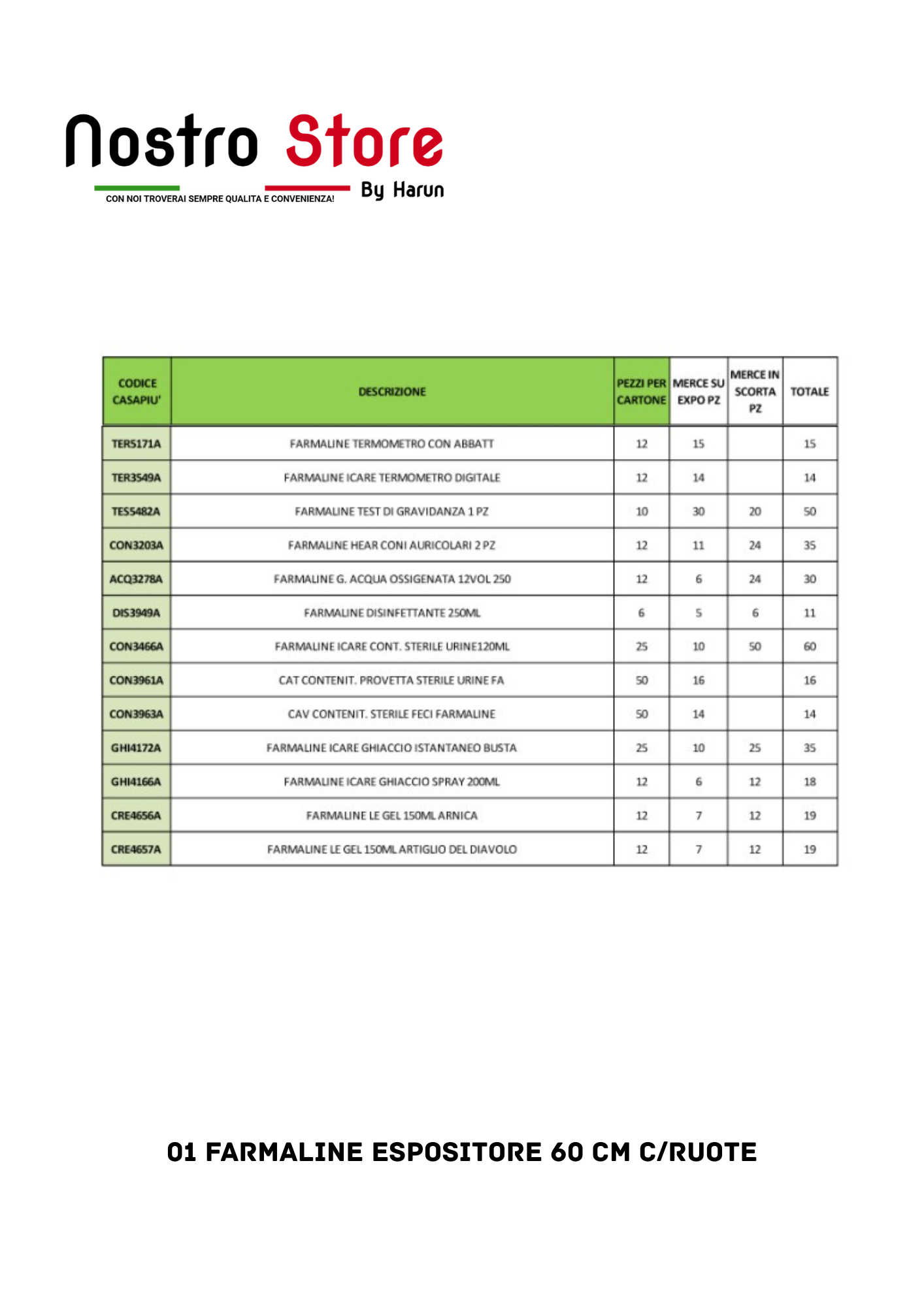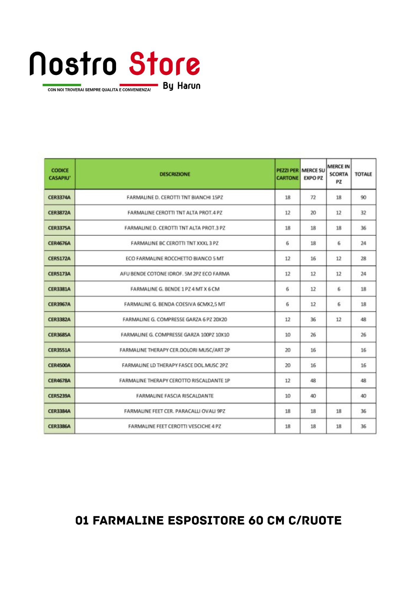 01 FARMALINE ESPOSITORE 60 CM C/RUOTE