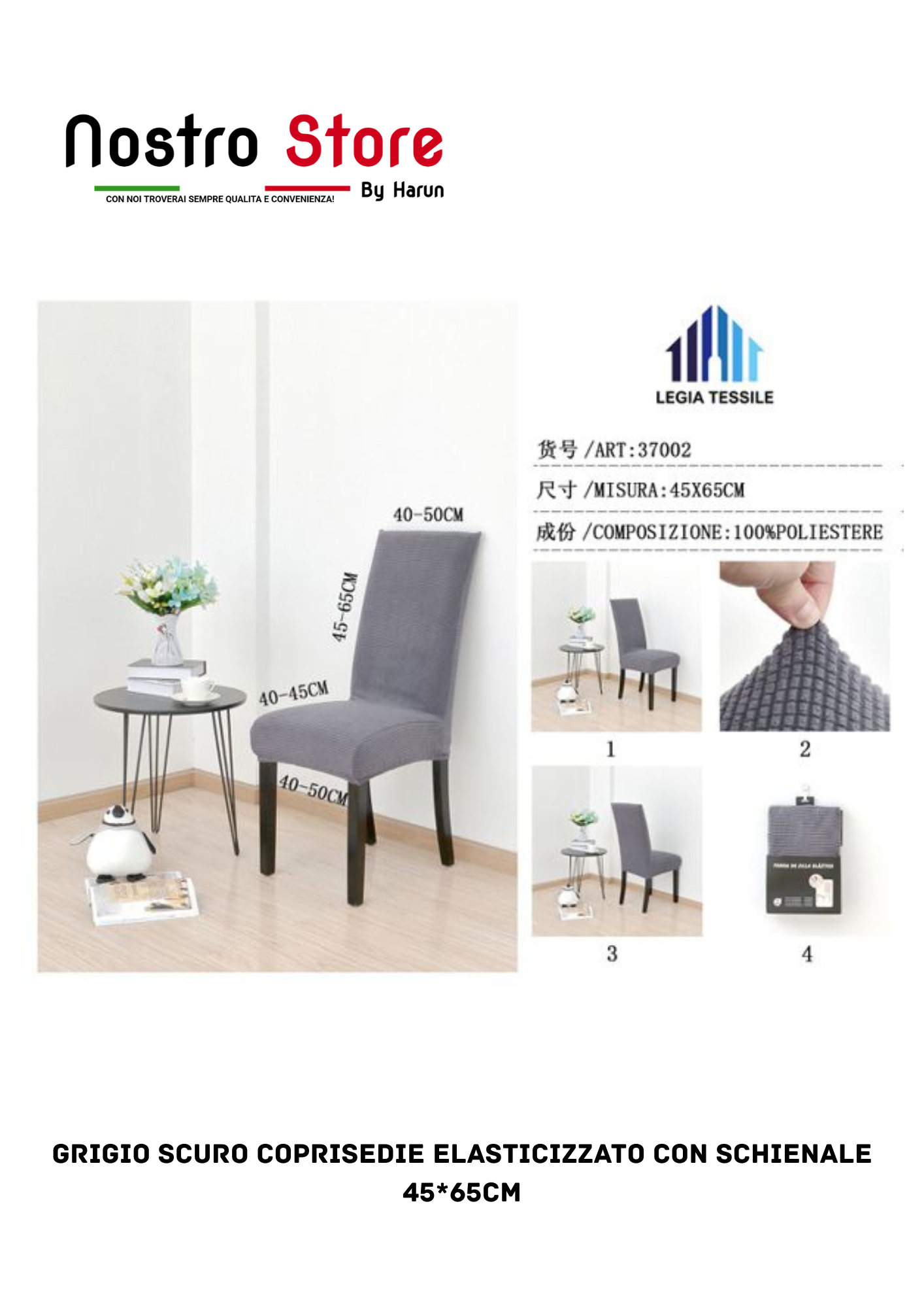 GRIGIO SCURO COPRISEDIE ELASTICIZZATO CON SCHIENALE 45*65CM