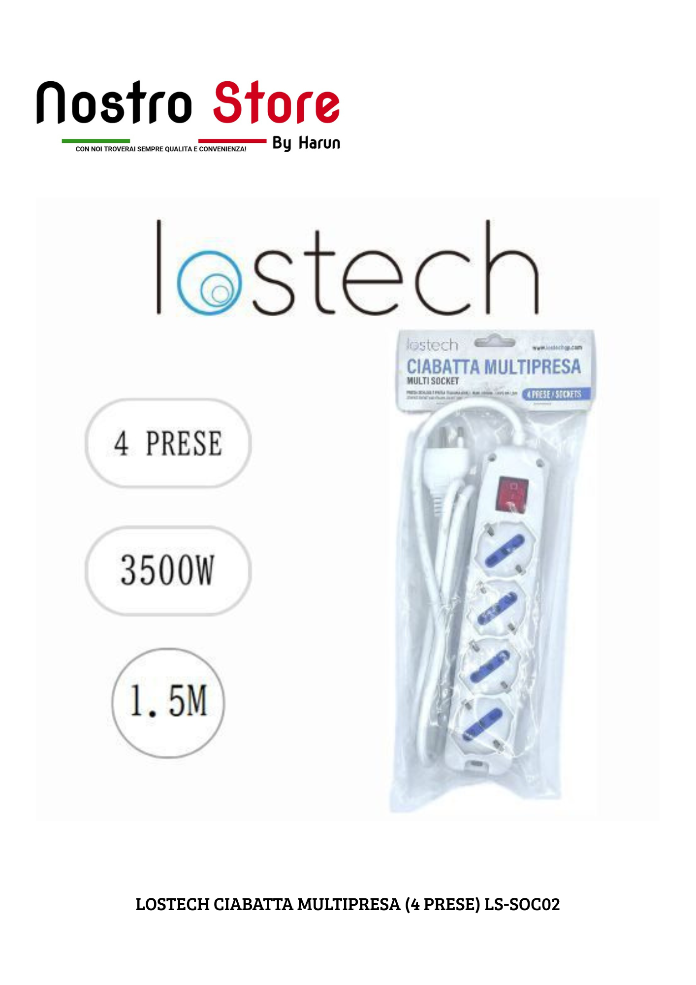 LOSTECH CIABATTA MULTIPRESA (4 PRESE) LS-SOC02