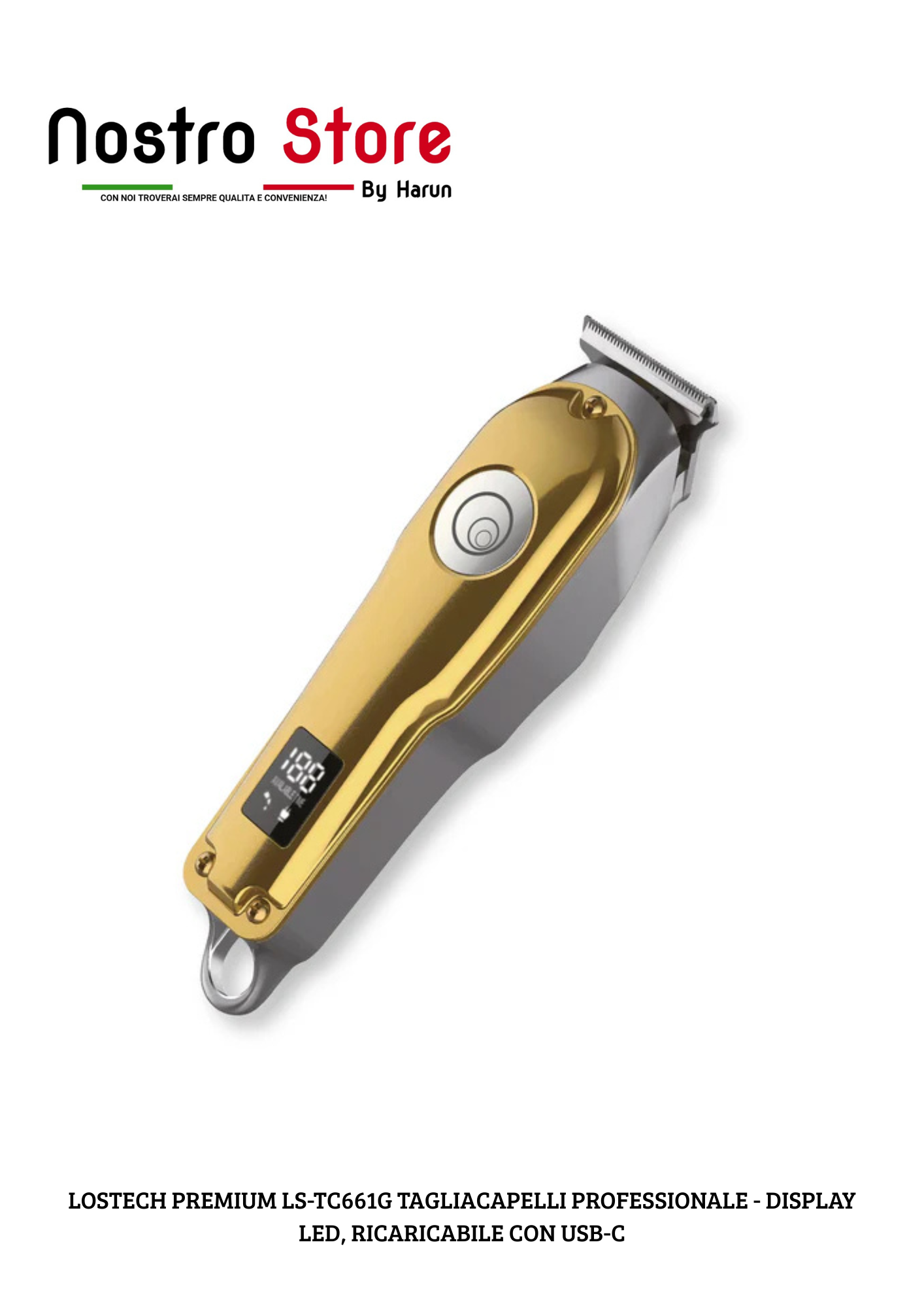 LOSTECH PREMIUM LS-TC661G TAGLIACAPELLI PROFESSIONALE - DISPLAY LED, RICARICABILE CON USB-C