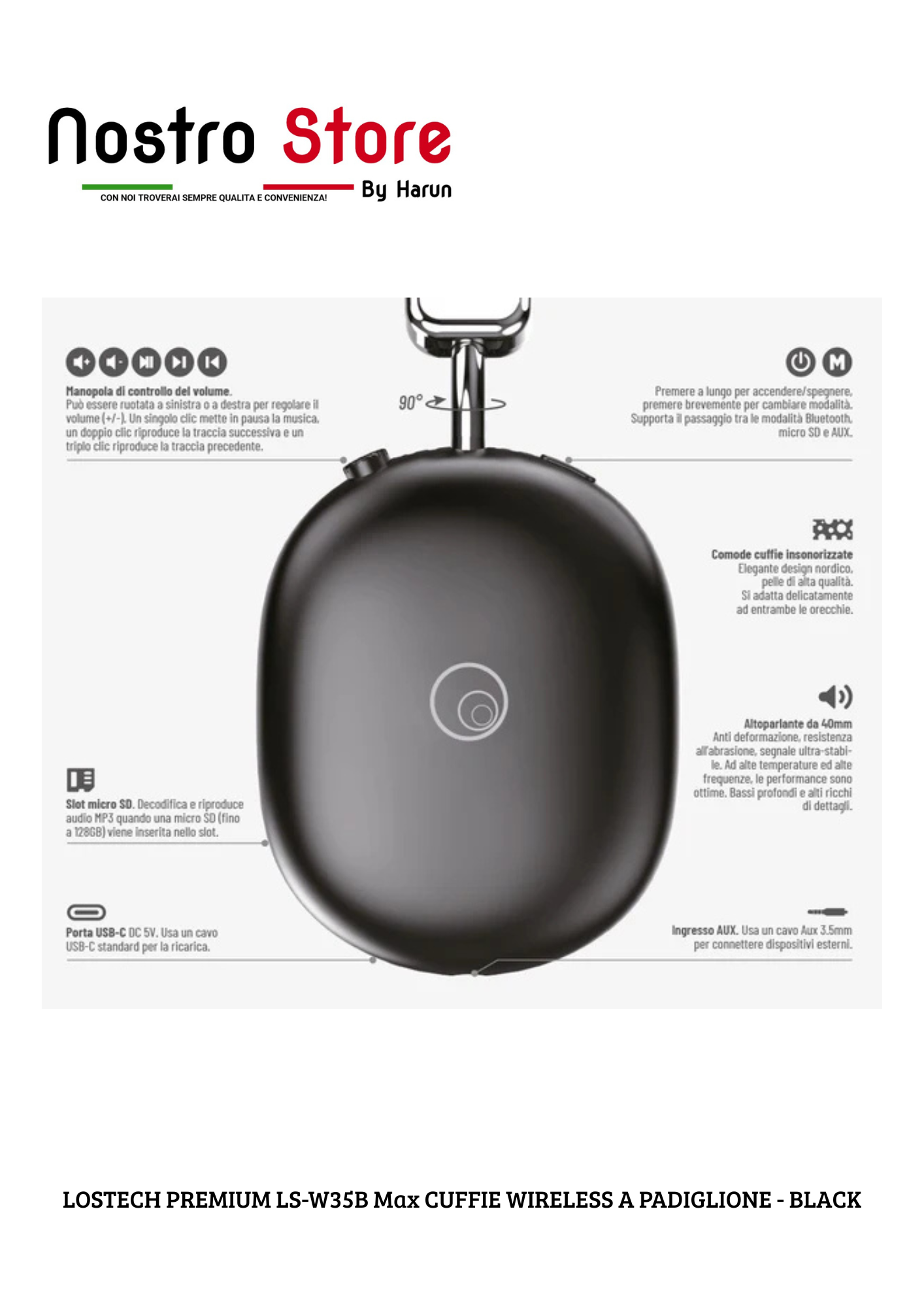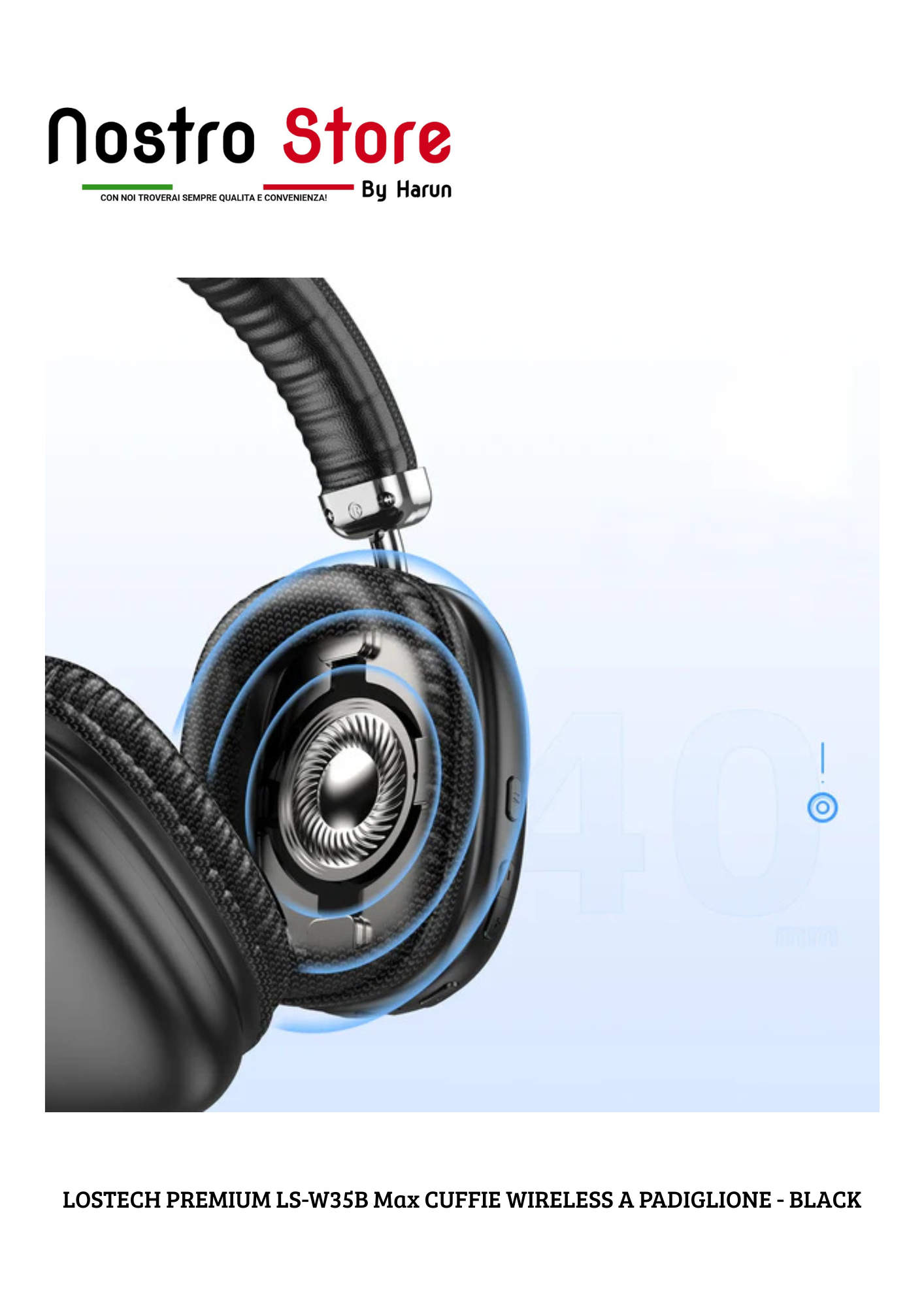 LOSTECH PREMIUM LS-W35B Max CUFFIE WIRELESS A PADIGLIONE - BLACK