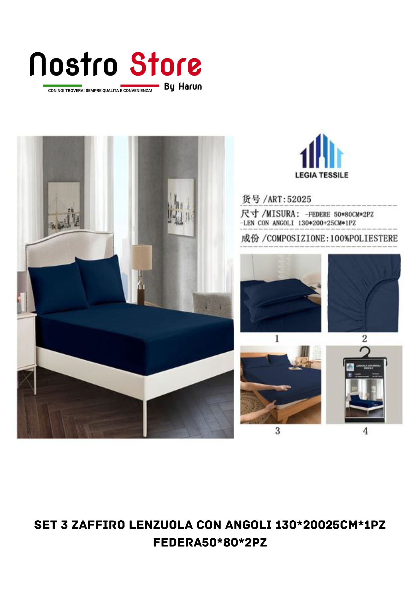 SET 3 ZAFFIRO LENZUOLA con angoli 130*20025CM*1PZ FEDERA50*80*2PZ