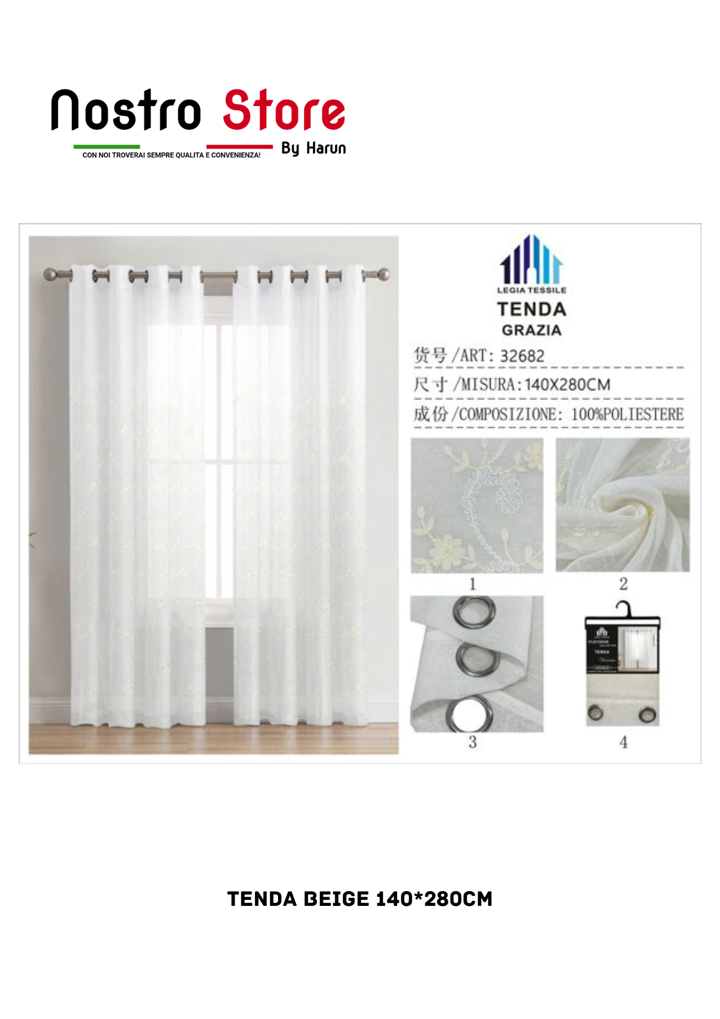 TENDA BEIGE 140*280CM