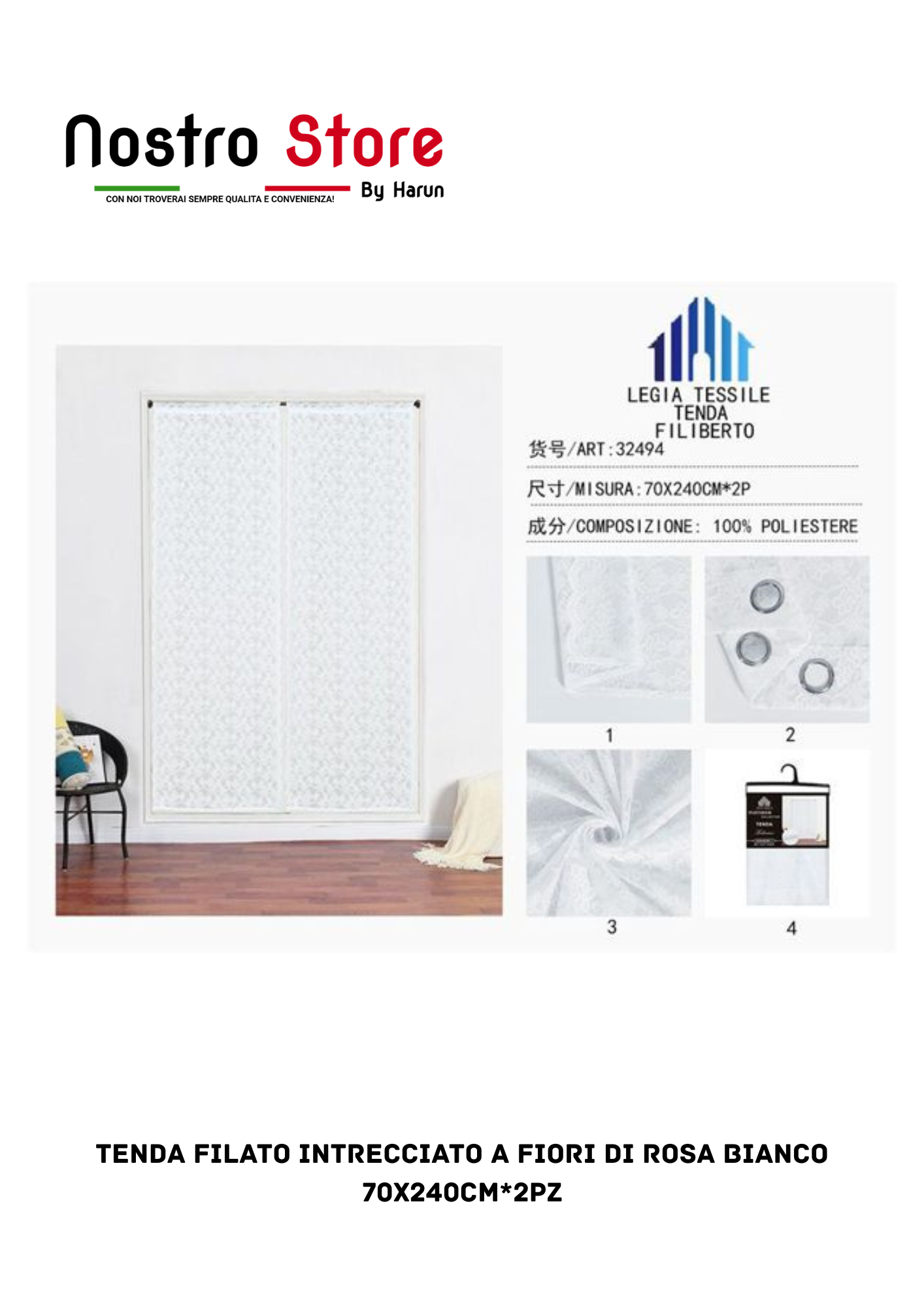 TENDA Filato intrecciato a fiori di rosa Bianco 70X240CM*2PZ