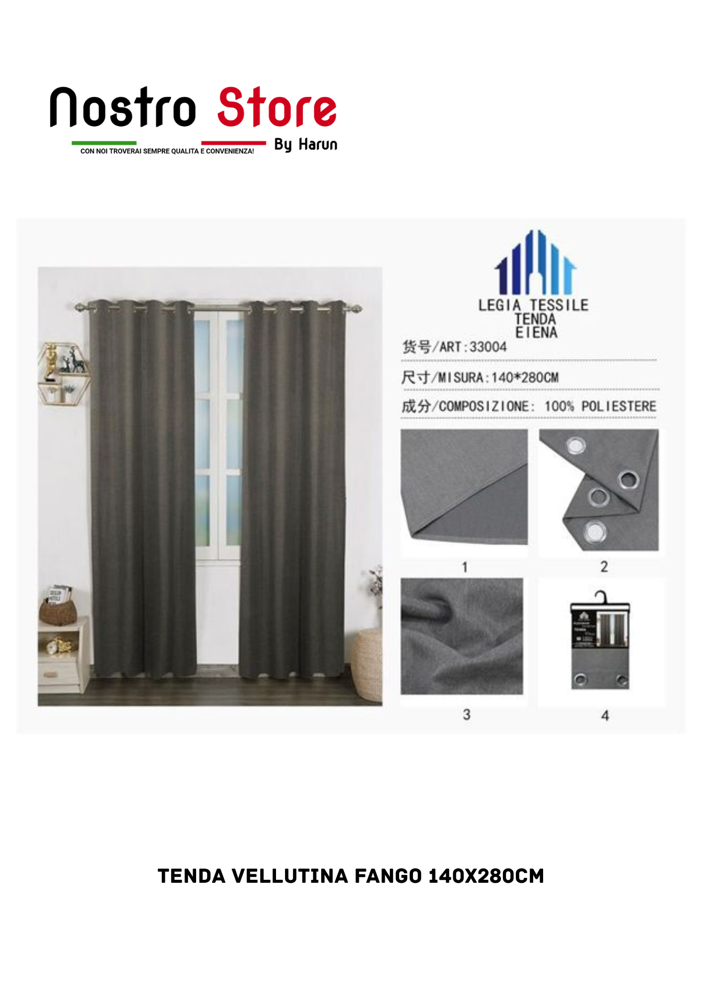 TENDA vellutina fango 140X280CM